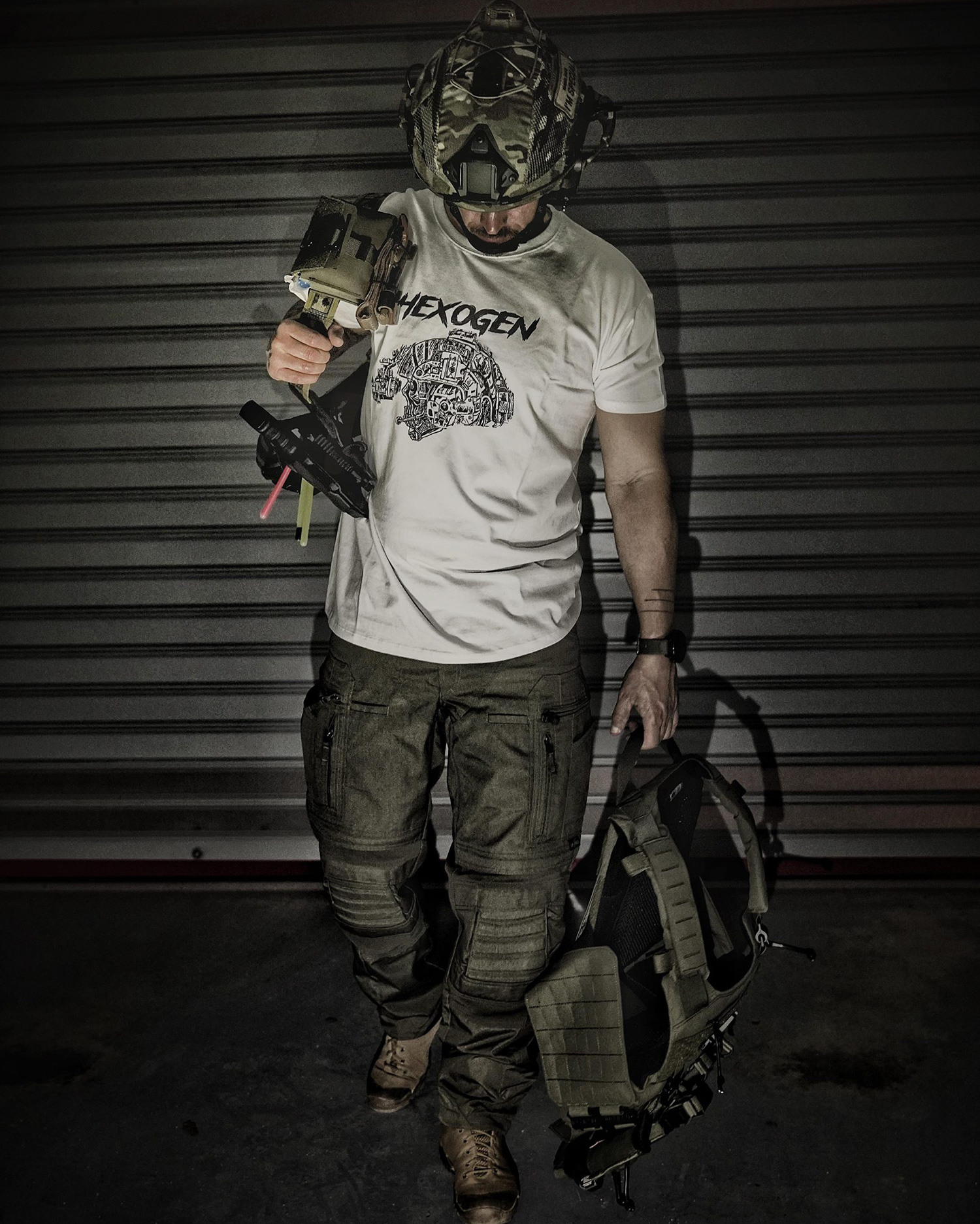 Camiseta con un diseño impactante: una calavera luciendo casco y visor nocturno, perfecta para un estilo tacticool